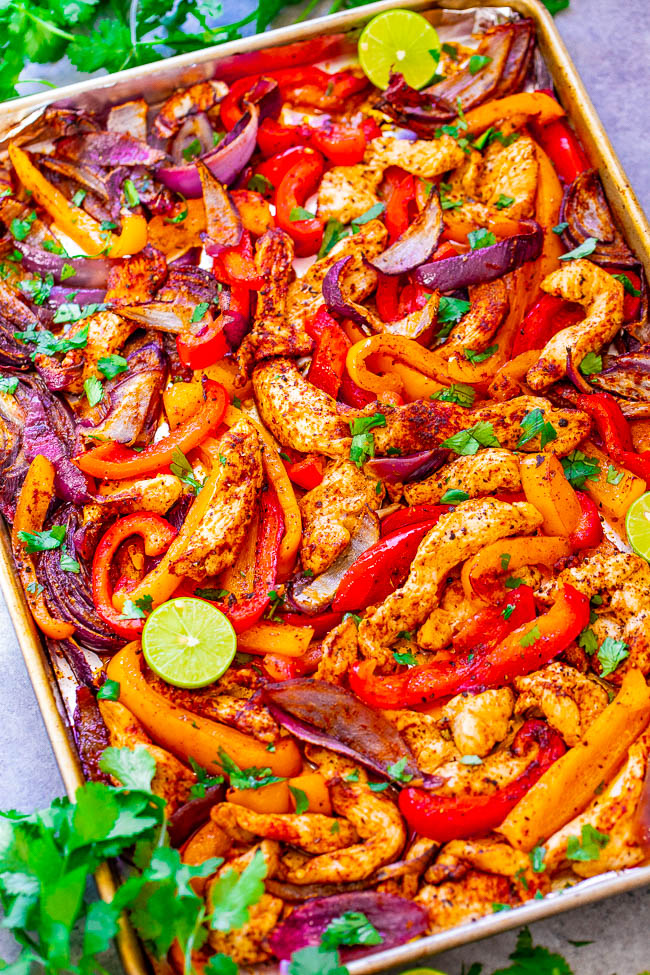 25 minutos de fajitas de pollo frito – FÁCIL, listo en poco tiempo, sabe AUTÉNTICO y hecho en UNA bandeja para hornear para simplificar las cosas, ¡especialmente en las noches ocupadas! ¡Quién necesita un restaurante mexicano cuando puedes hacer fajitas tan BUENAS y saludables en casa!