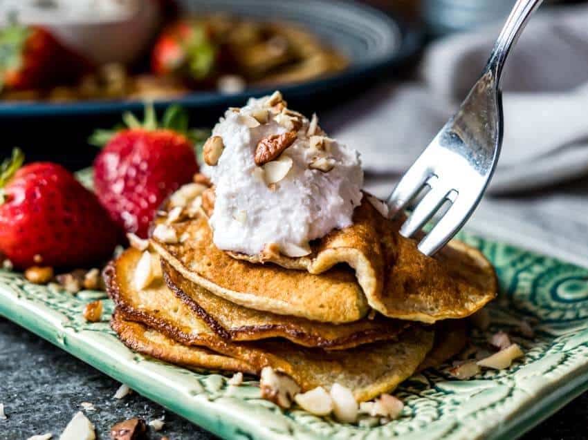Estos sencillos panqueques de plátano de 3 ingredientes son paleoaprobadoY bajo en carbohidratos apto para cetosis