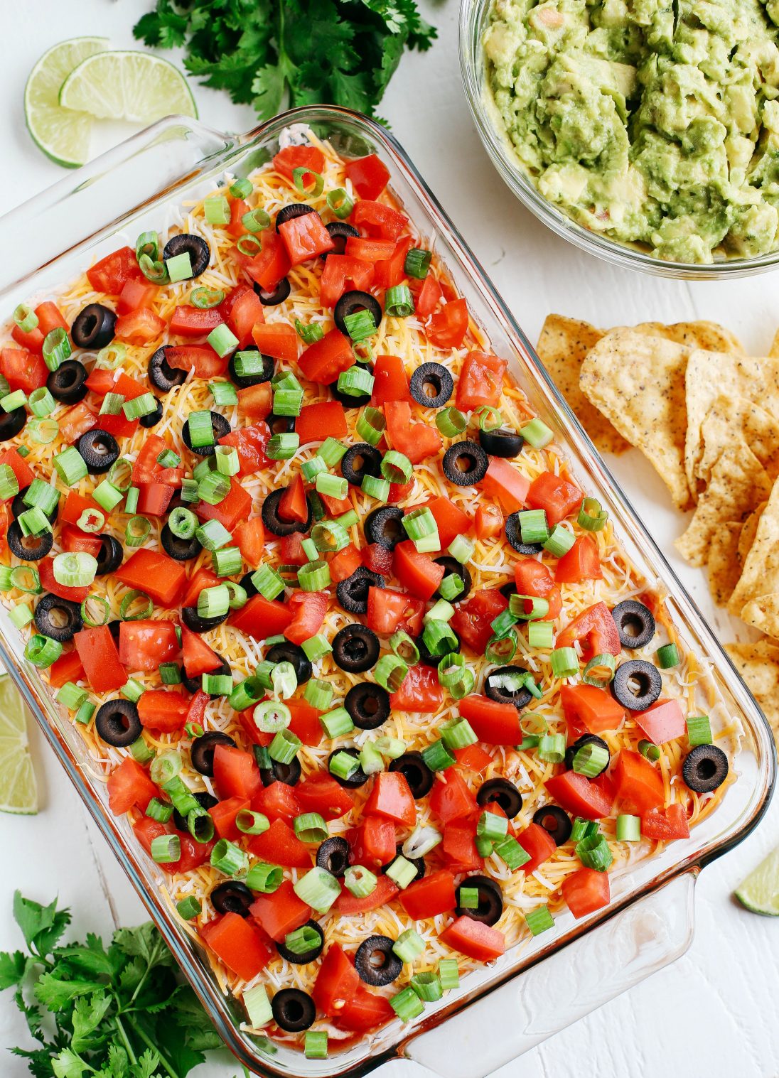 Esta es una receta tan clásica que todo el mundo debería tener a mano, ¿por qué no hacerla más saludable? ¡Ingredientes frescos y saludables, toneladas de sabor y la excusa perfecta para combinarlos todos! De hecho, lo hice hace poco para una fiesta del Cinco de Mayo y fue todo un éxito, pero es uno de esos dips ideales para cualquier ocasión, ya sea una fiesta del Super Bowl, un picnic o una cena. ¡Día de los Caídos gratis!