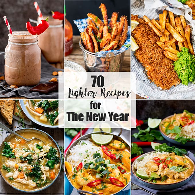 Así que aquí está mi lista de 70 recetas más ligeras para el Año Nuevo, divididas en desayuno, almuerzo, cena, bocadillos y algo dulce. Haz clic en la imagen para ver la receta completa.