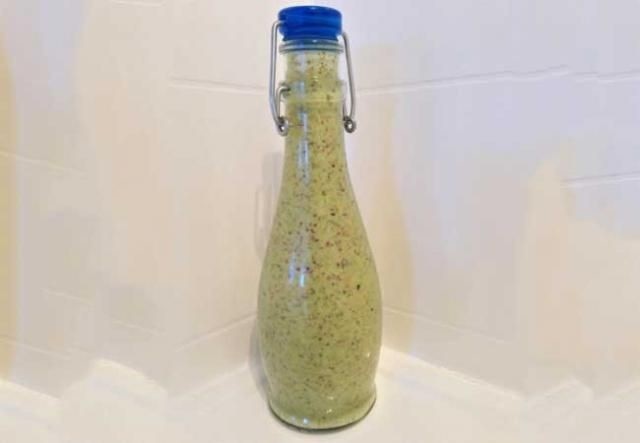 Esta receta se puede ajustar al gusto. Si lo prefiere, simplemente ponga ¼ de taza de mostaza entera en la licuadora con los demás ingredientes, luego agregue el ¼ de taza restante hasta el final para que algunas semillas estén enteras. Si encuentra la salsa demasiado espesa, simplemente mezcle con un poco de agua para diluirla hasta obtener la consistencia deseada. Use eneldo fresco o ½ cucharadita de pasta de eneldo fresco.