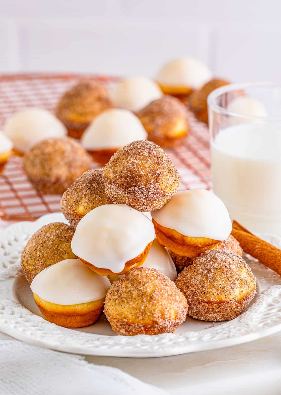 Mi familia está dividida entre el azúcar glas y la canela, ¡así que esa es otra razón por la que estos agujeros de donas horneados están en ambos! Pero me encantan los dos, así que me los comeré todos.
