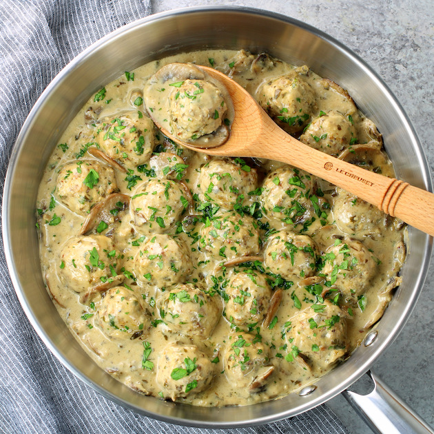 Como hacer Albóndigas De Pavo Con Salsa Cremosa De Champiñones Y Parmesano: