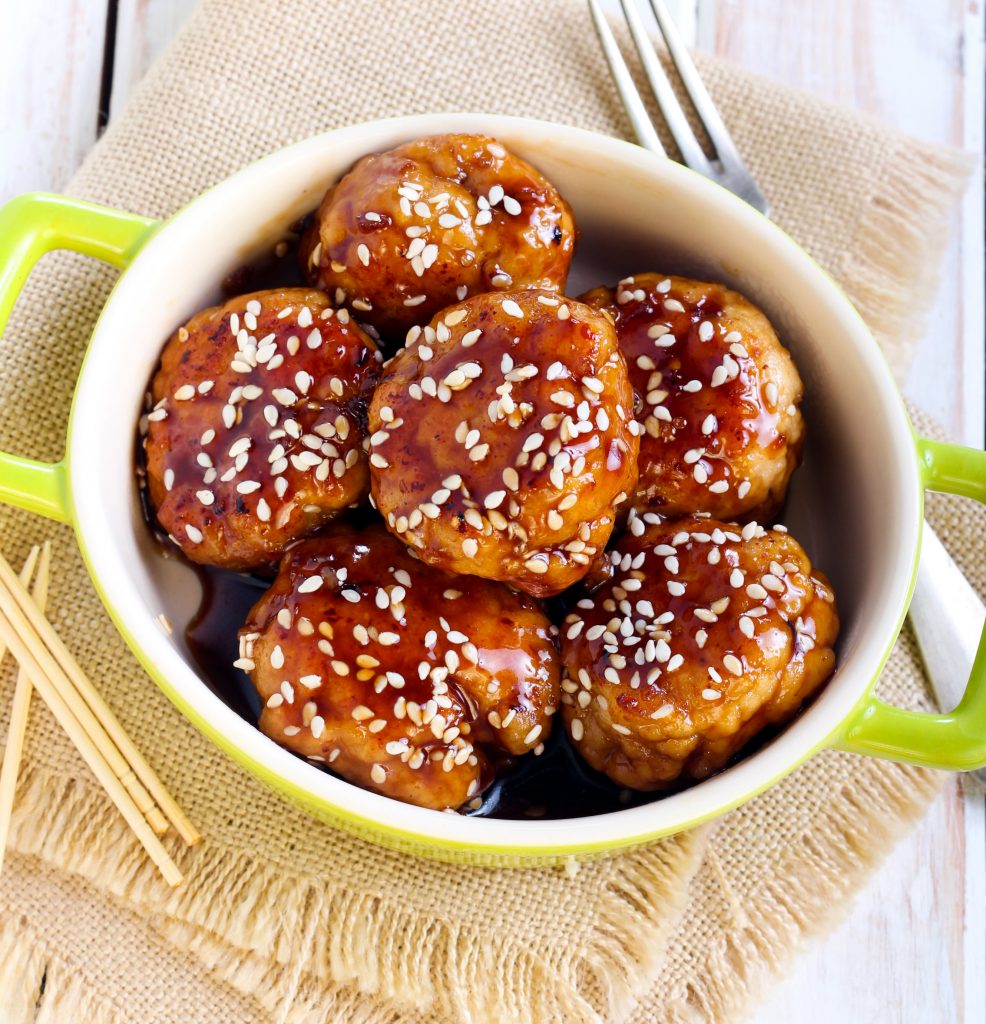 Estas albóndigas de pavo especiadas de inspiración asiática se pueden comer como refrigerio o se puede duplicar la receta como cena y servir con verduras o arroz basmati. ¡También son un excelente comienzo para la cena y dejarán a sus invitados muy impresionados!