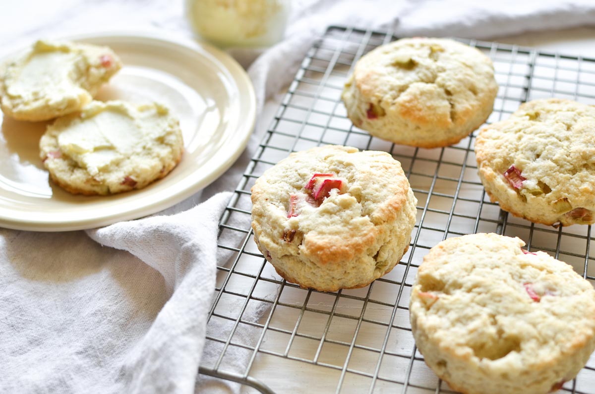 Scones de ruibarbo ~ Estos deliciosos bollos cargados con pequeños trozos de ruibarbo jugoso son un desayuno perfecto o un refrigerio a la hora del té. Asegúrese de congelar un poco de ruibarbo cuando esté en temporada para que pueda disfrutarlo todo el año.