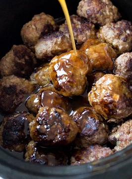 Albóndigas hawaianas de cocción lenta cubiertas con salsa agridulce. ¡Son un gran entrante o plato principal!