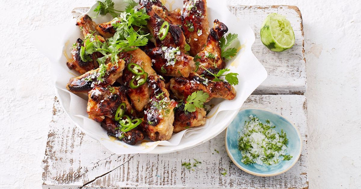 Usando pinzas, transfiera el pollo a un tazón grande. Tapar para calentar. Transfiera el líquido de cocción a una sartén grande. Agrega miel. Cocine a fuego medio-alto durante 12 minutos o hasta que la salsa hierva y espese. Agregue el cilantro y el jugo de limón restante. Agrega la salsa a las alitas. Revuelva para cubrir.