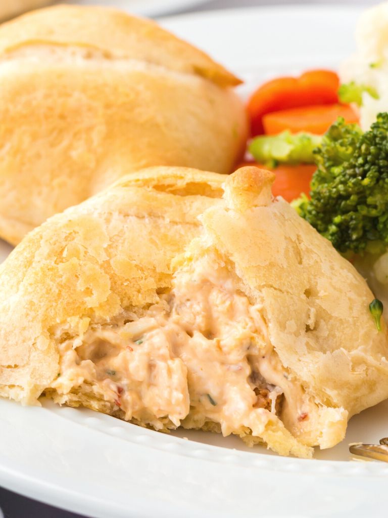¡Tengo tantas versiones diferentes de esta receta de almohada de pollo flotando en mi cabeza! El más nuevo es una almohadilla de pollo buffalo ligeramente picante y súper cremosa. Fácilmente pueden ser menos picantes para los niños pequeños, o puede aumentar el nivel de calor.