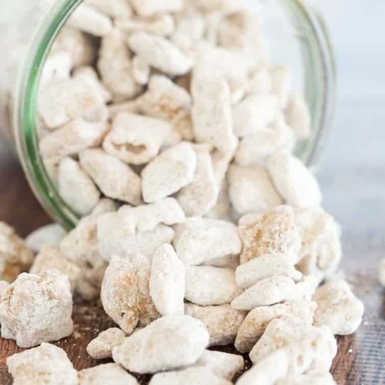 Si no estás familiarizado con el nombre (es un poco raro, ¿verdad?), probablemente también hayas escuchado este dulce llamado cachorro (¡aún más raro!). Con la versión original, tome los cereales Rice Chex, mézclelos con una mezcla de chocolate derretido y mantequilla de maní y viértalos en el azúcar en polvo. Es tan increíblemente adictivo como puedas imaginar. ¿A lo mejor? Hay un millón de variaciones diferentes que puedes hacer en base a esta receta original.