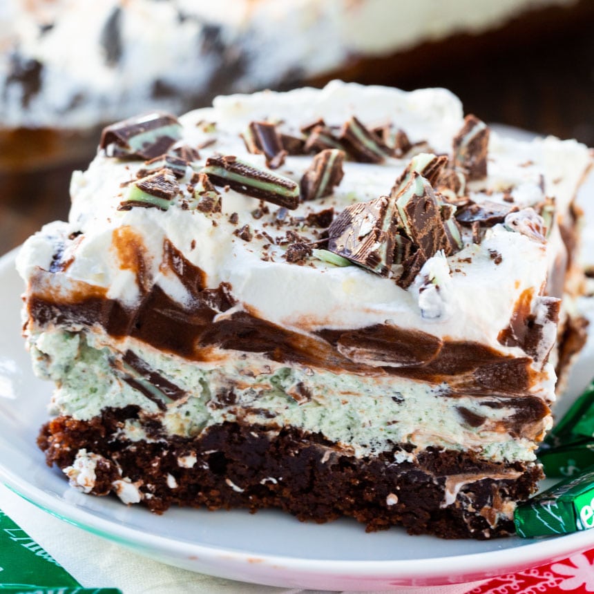 Andes Mint Lush tiene 4 deliciosas capas y está lleno de sabor a menta. La capa inferior es un brownie peludo cubierto con una capa de queso crema de menta, una capa de pudín de chocolate y un batidor frío para rematar.