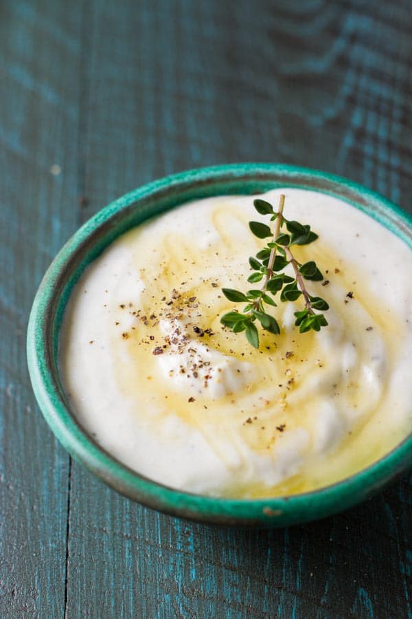 - Coloque todos los ingredientes en una licuadora de alta potencia y mezcle hasta que quede completamente suave. Sirva en un buen plato con picatostes o galletas saladas al lado. Vierta un poco más de miel encima con un poco más de pimienta y una ramita de tomillo.