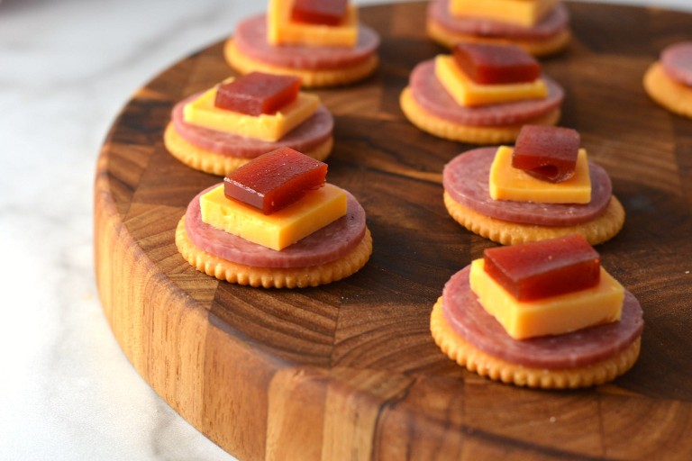 Este aperitivo puertorriqueño típico incluye salami, pasta de guayaba y queso cheddar fuerte, apilados sobre masa quebrada. Este aperitivo de salami, guayaba y queso es un alimento básico en muchos festivales puertorriqueños y una combinación perfecta de sabores dulces y salados.