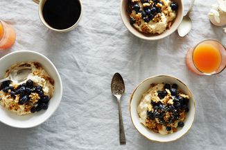 Mezclar los arándanos con el azúcar integral. Deje reposar durante 45 minutos, revolviendo ocasionalmente, hasta que las bayas estén vibrantes, jugosas y ligeramente descompuestas.