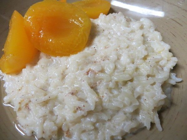 Coloque el arroz en un plato hondo y agregue la leche, el azúcar, la sal y la vainilla.
