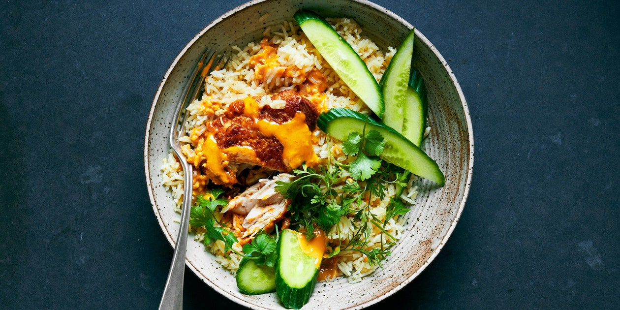 Nos inspiramos en el arroz con pollo de Hainan para crear este plato de una semana. Busque el arroz basmati de la más alta calidad que pueda encontrar (recomendamos la marca Daawat); marcará una gran diferencia al producir arroz extremadamente suave y uniformemente cocido.