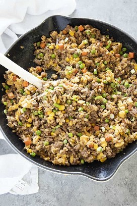 Como la mayoría de las familias, ¡aquí comemos mucha carne! Creo que todos podemos estar de acuerdo en que la carne de res es generalmente una carne en la que toda la familia puede estar de acuerdo. Su versatilidad es lo que más me gusta y quería desarrollar una receta que agradara a toda la familia, ¡incluso a los niños ansiosos por unirse a la mesa para la cena! ¡La carne molida es tan fácil de encontrar, rápida de cocinar para familias ocupadas y repleta de proteínas! Debido a que tiene un alto contenido de proteínas y nos brinda 10 nutrientes esenciales, ¡es algo que me hace sentir bien sirviendo a mi familia para mantenernos con energía y en movimiento! Este arroz frito con carne molida usa carne de res de una manera simple, pero con gusto serviría esta comida a la compañía. ¡También es seguro para congelar, por lo que puede duplicar el lote y tener una comida extra a mano para las noches ocupadas!