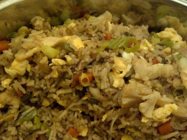 - 2 tazas de arroz blanco de grano largo cocido frío