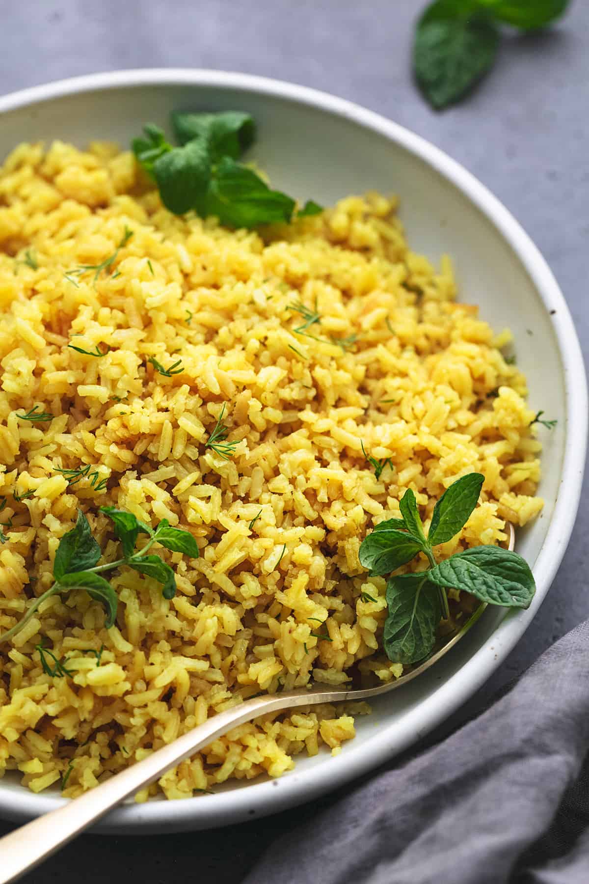 Cúrcuma – Definitivamente una especia menos utilizada, ¡pero la cúrcuma agrega un delicioso sabor y color a este arroz con sabor a limón que no querrás saltear!