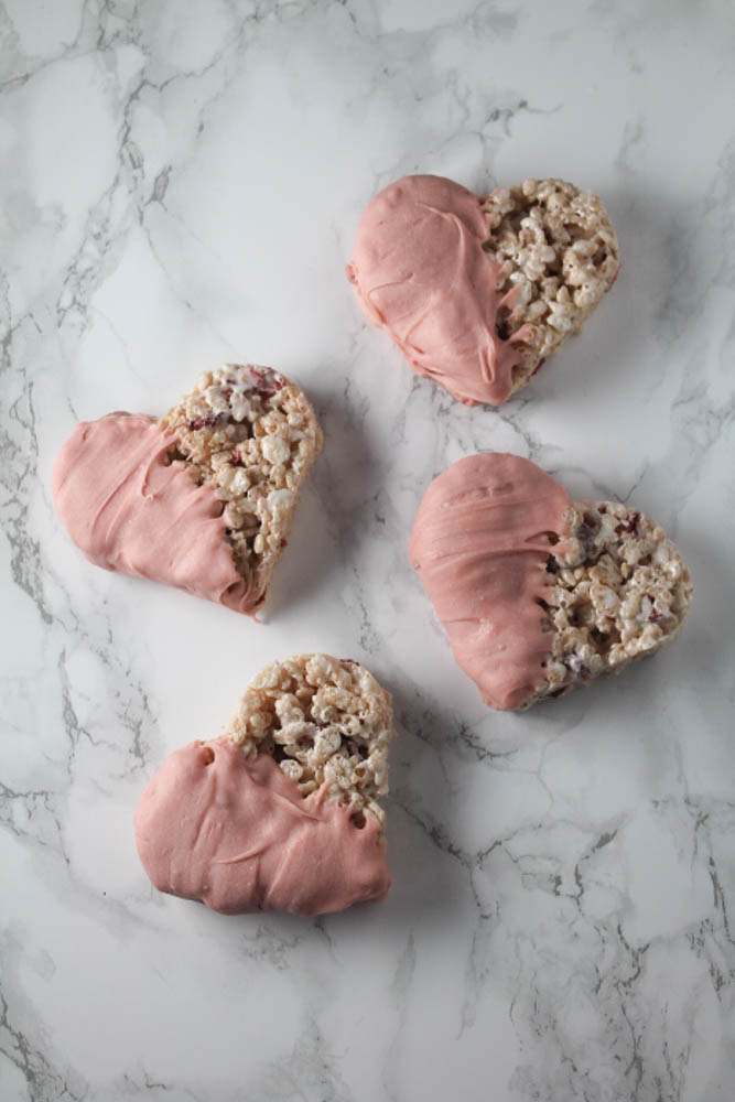 ¡Feliz día de los enamorados! Tú lo haces amor ¿San Valentín? ¿Eres un enemigo de V-Day? Estoy un poco en el medio. El día de San Valentín no es gran cosa en nuestra casa. Mi esposo y yo estamos celebrando nuestro aniversario de boda unos días antes y mis hijos aún no están en edad escolar, por lo que no hacemos mucho ruido durante las vacaciones. No quería descuidarlo por completo, así que vamos a tomar nuestro desayuno del Día de San Valentín esta mañana y también hicimos estas delicias de Krispie en forma de corazón con fresas de arroz para algunos amigos del vecindario.