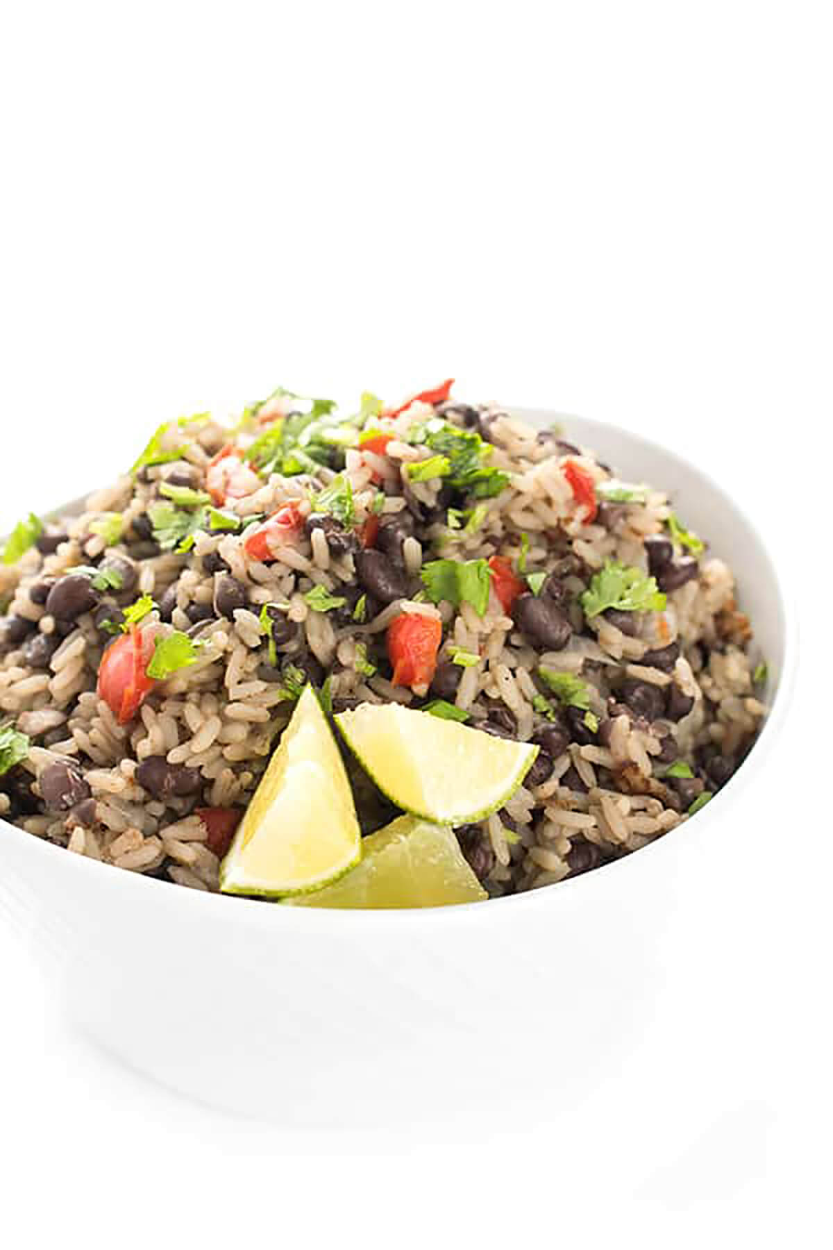 - Use un tenedor para disolver la mezcla de arroz y frijoles y sirva con cilantro fresco y rodajas de limón.