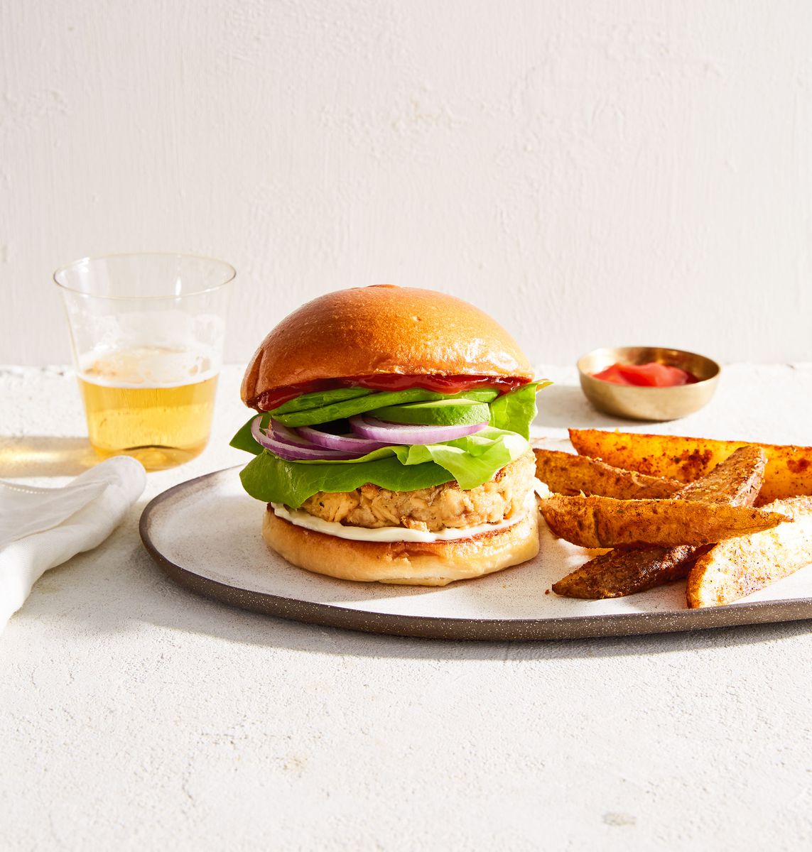 El salmón enlatado es una alternativa económica y económica al fresco y es ideal para hamburguesas fáciles. No te preocupes por los huesos en la mezcla. Una vez cocinados se vuelven imperceptibles y son fuente de calcio. Me gusta untar estas hamburguesas con una combinación de ketchup y mayonesa, deliciosas. —Jenna Helwig