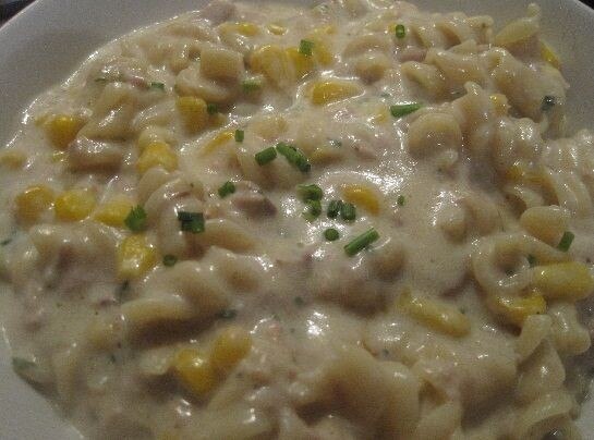 Agregue el atún y el maíz a los fideos y caliente por un minuto.