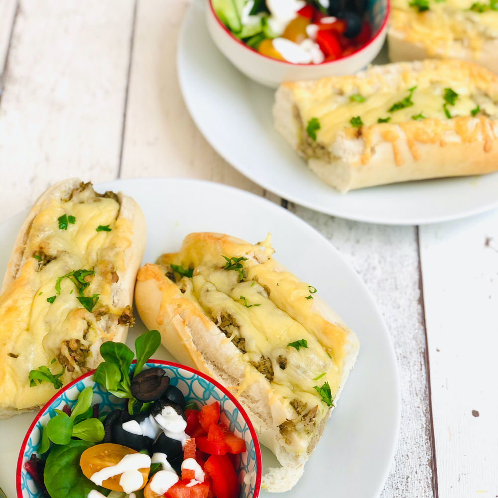 Baguette de atún con queso súper sabrosa, una gran idea para una comida rápida y fácil.