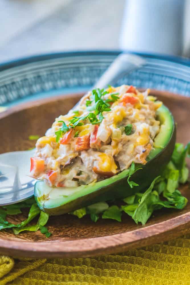 Soy una de esas personas que nunca sabe qué preparar para el almuerzo, especialmente cuando se trata de almuerzos bajos en carbohidratos. Es fácil recrear los viejos favoritos de la cena, pero no es tan fácil hacer un refrigerio bajo en carbohidratos, que era lo que almorzaste. Un día, mientras navegaba por pinterest, vi uno de esos pines de aguacate y me dio una idea. Tome un sándwich de atún derretido y colóquelo en un aguacate. Atún fundido y aguacate. Yass