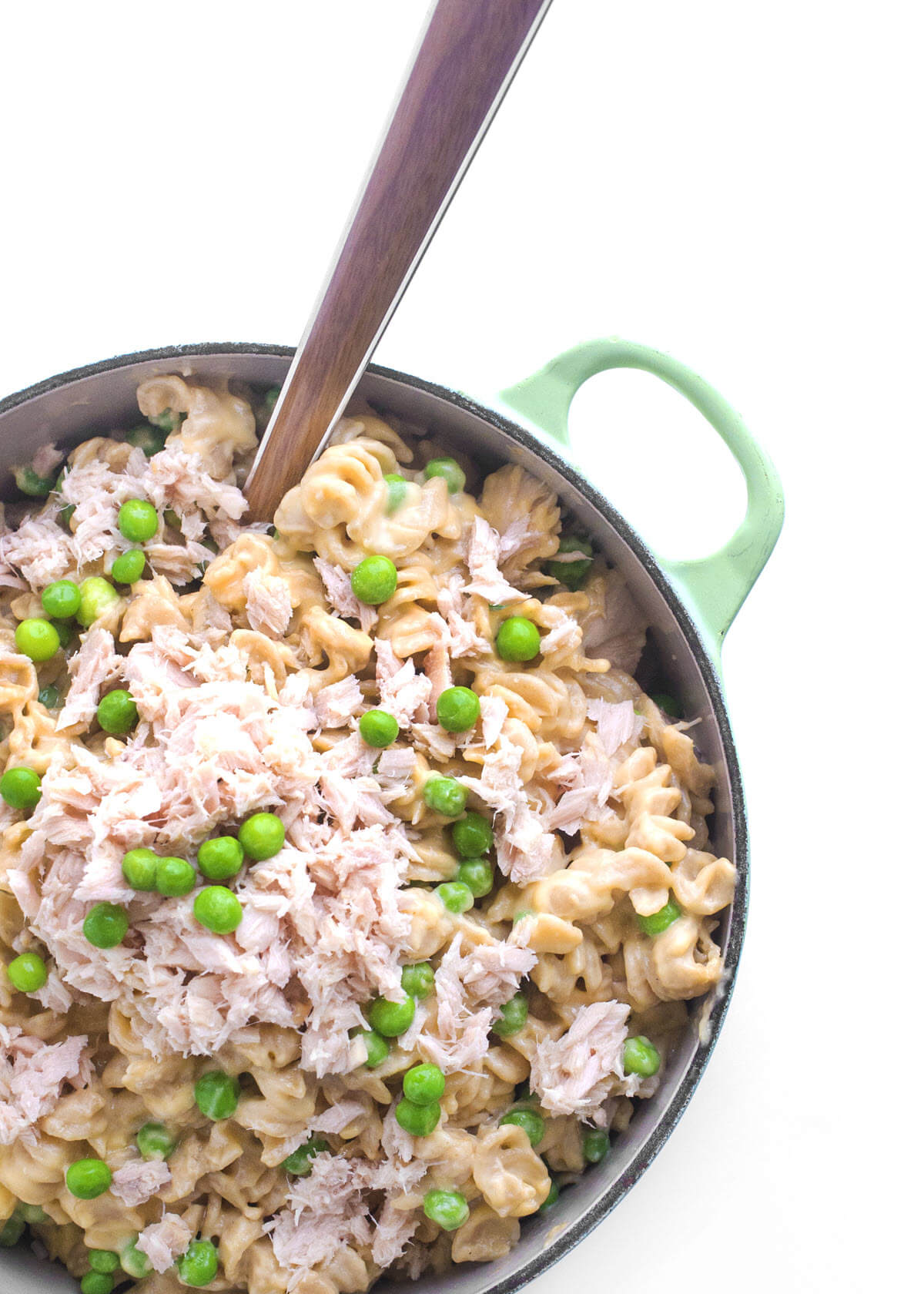 Nos encanta cambiar nuestros macarrones con queso por varios brebajes como calabaza, calabaza o puré de coliflor, pero esta vez me quedo con uno de mis favoritos de la infancia: atún y guisantes. Para llevarlo al siguiente nivel, utilizo atún blanco de Génova envasado en aceite de oliva puro.