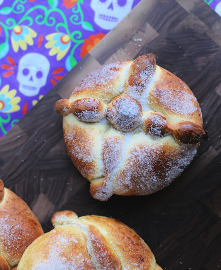 Pan de muertos representa la tumba y los dibujos de arriba representan los huesos. Es una forma tan deliciosa y tan especial de conmemorar y recordar a nuestros seres queridos que han fallecido.