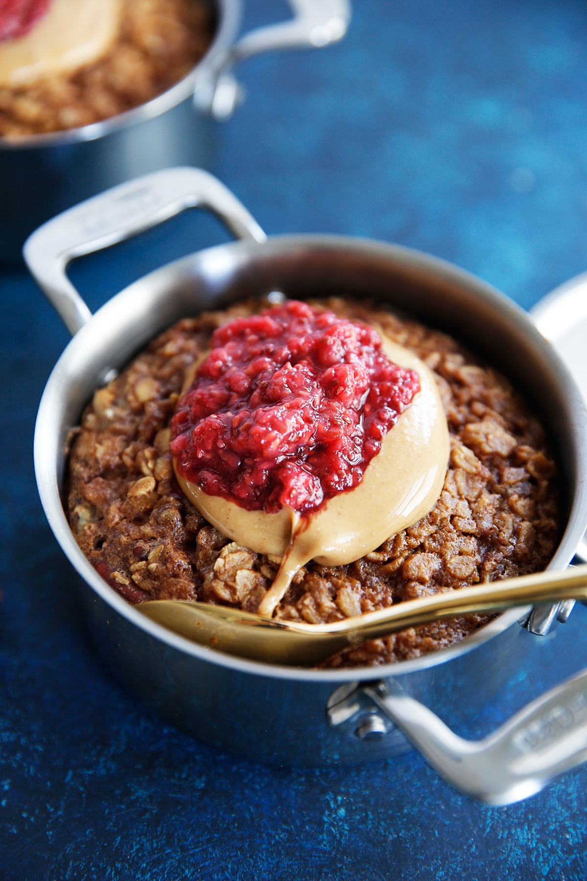 Esta avena horneada con PB&J tiene todos los mismos sabores que un PB&J, pero sin el pan tradicional. Cada bocado es un mini PB&J en sí mismo con una textura más emocionante y, por supuesto, todos los beneficios nutricionales de su lista de ingredientes limpios. ¡Es el desayuno de avena horneado perfecto para un desayuno entre semana o un brunch de fin de semana!