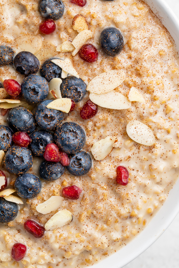 Esta avena cortada en acero se vuelve rica, cremosa y perfectamente esponjosa durante la noche, lo que hace que el tazón de avena dulce perfecto esté listo para usted por la mañana. ¡No son demasiado líquidos o acuosos y no son duros ni gomosos! Perfectamente cremoso y fácil.