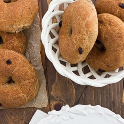 La mayoría de los bagels requieren hervirse en un baño de bicarbonato de sodio, pero estos bagels son realmente deliciosos sin ese paso. ¡Son sorprendentemente fáciles de hacer!