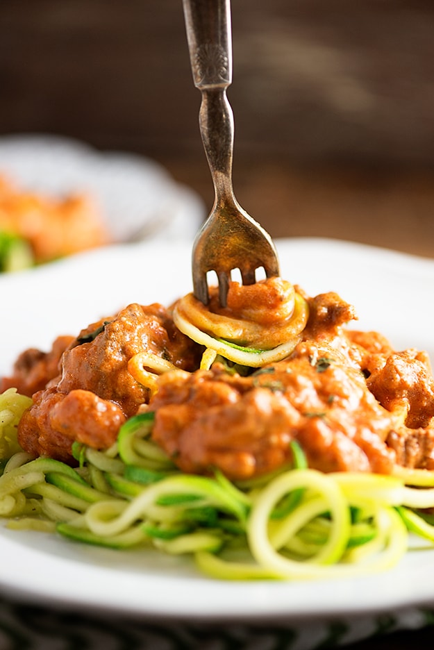 Zoodles de espagueti con queso crema bajo en carbohidratos