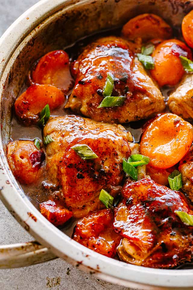 Palabras clave: pollo albaricoque, pollo asado, muslos de pollo asados, receta fácil de cena de pollo, cómo cocinar muslos de pollo