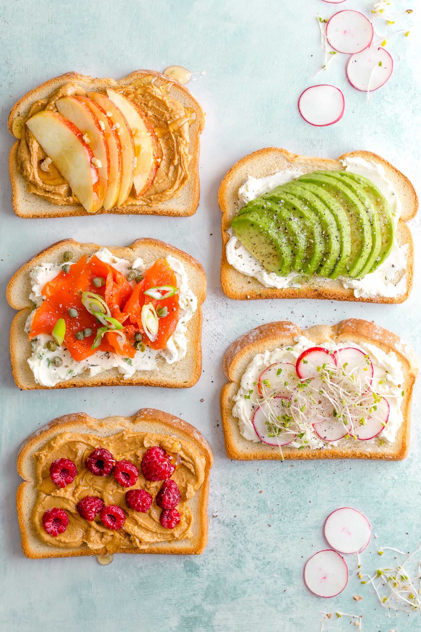 No necesita una receta que le diga cómo tostar pan y agregar aderezos, pero lo que podría necesitar es inspiración para preparar un desayuno que sea fácil de preparar y divertido para los invitados (especialmente los niños). A todo el mundo le gusta tener opciones y no tienes que cocinar.