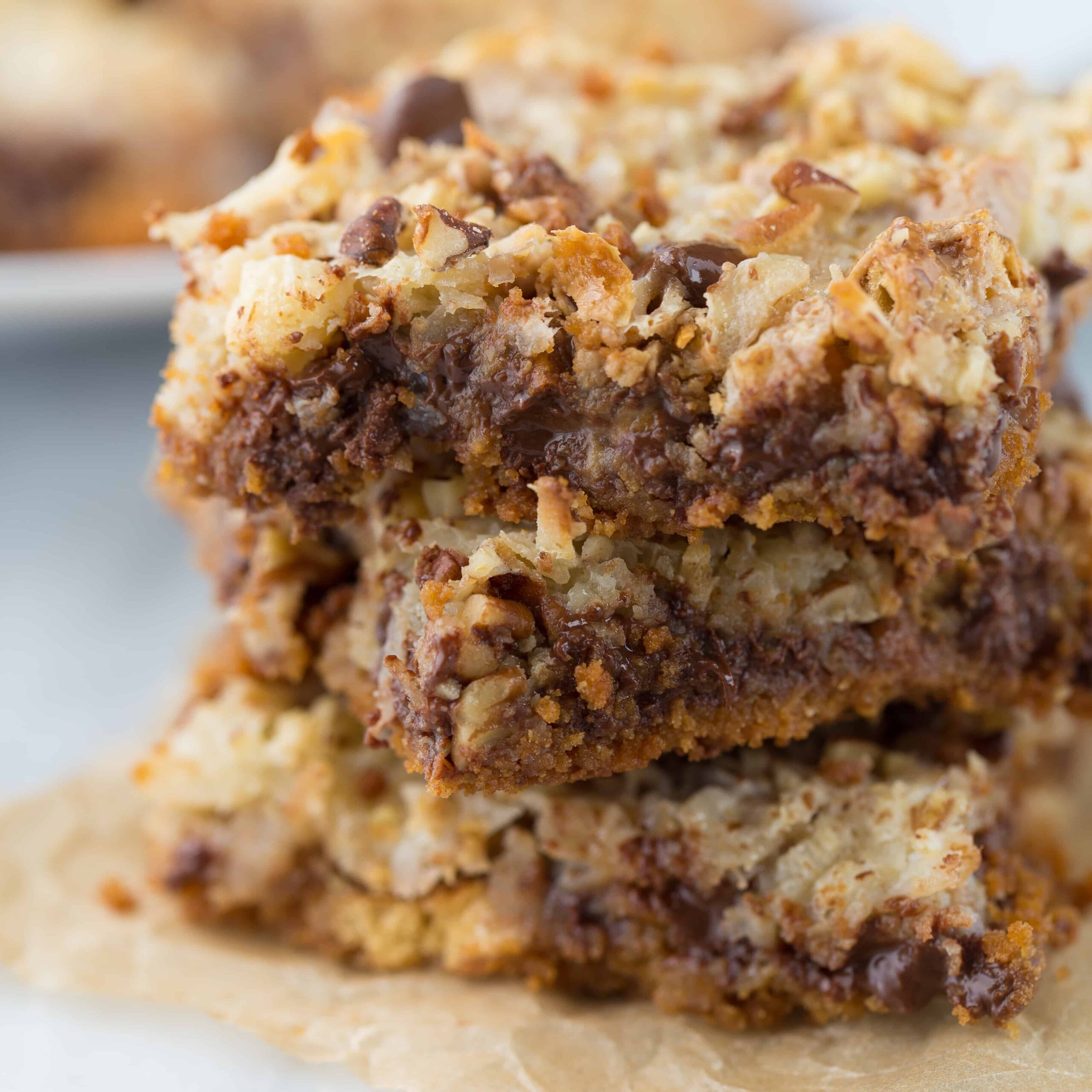 Si necesita un capricho decadente sin gluten, ¡no busque más! Las barras de 7 niveles también se conocen como Hello Dollies (¡por mis padres!) y Magic Cookie Bars. ¡Son realmente mágicos, así que creo que todos estos nombres están bien!