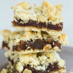 Entre el dulce relleno de dátiles con un toque de sabor y las cortezas crujientes por debajo y por encima, estas barritas son una delicia fantástica. Si los corta más pequeños, serían una gran adición a cualquier bandeja de galletas de Navidad. ¡Sí, ya tengo la Navidad en la cabeza!