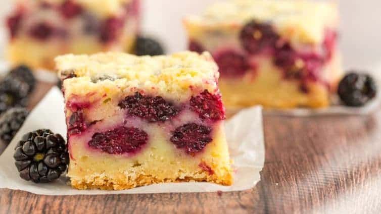 ¡Pero! Si eres como yo y siempre te gustan las fresas y los arándanos, dale un poco de amor a las moras y haz estas barras de pastel de moras. Si planea celebrar el Día de los Caídos (o planea con anticipación el 4 de julio), tal vez incluso una combinación de moras y frambuesas para un espectáculo súper festivo 🙂