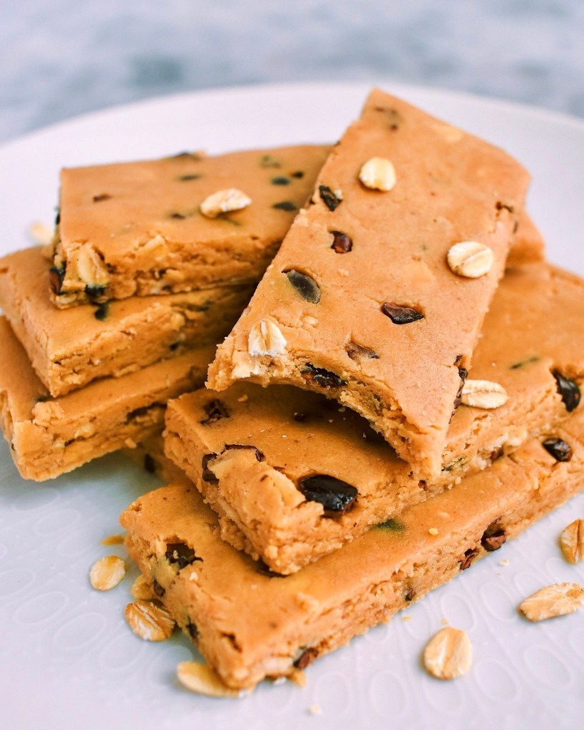 Barras de proteína de masa de galletas de mantequilla de maní