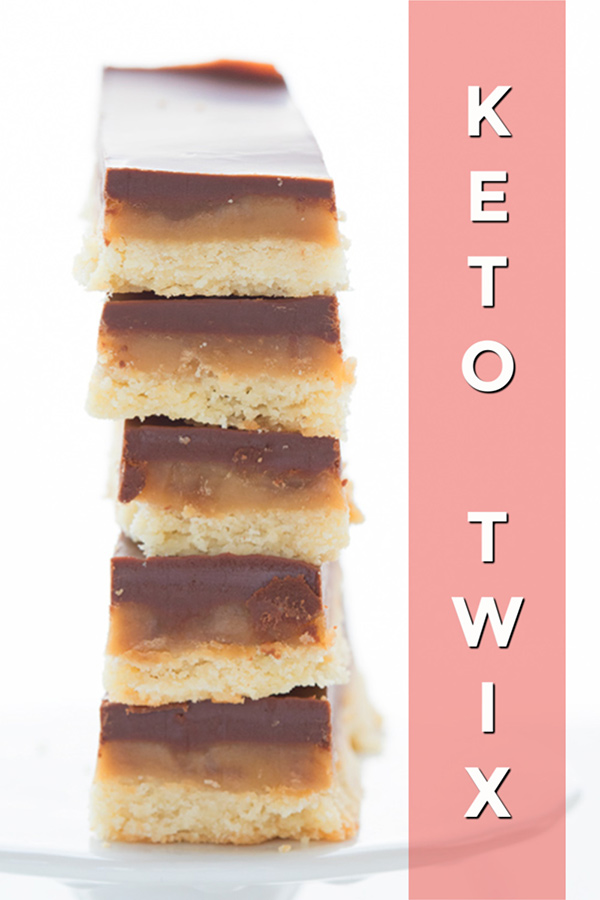 1 ¡Crea tu propia barra cetogénica Twix! Masa de pan dulce suave cubierta con caramelo sin azúcar y chocolate con leche. Una deliciosa manera baja en carbohidratos para satisfacer esos antojos de chocolate.