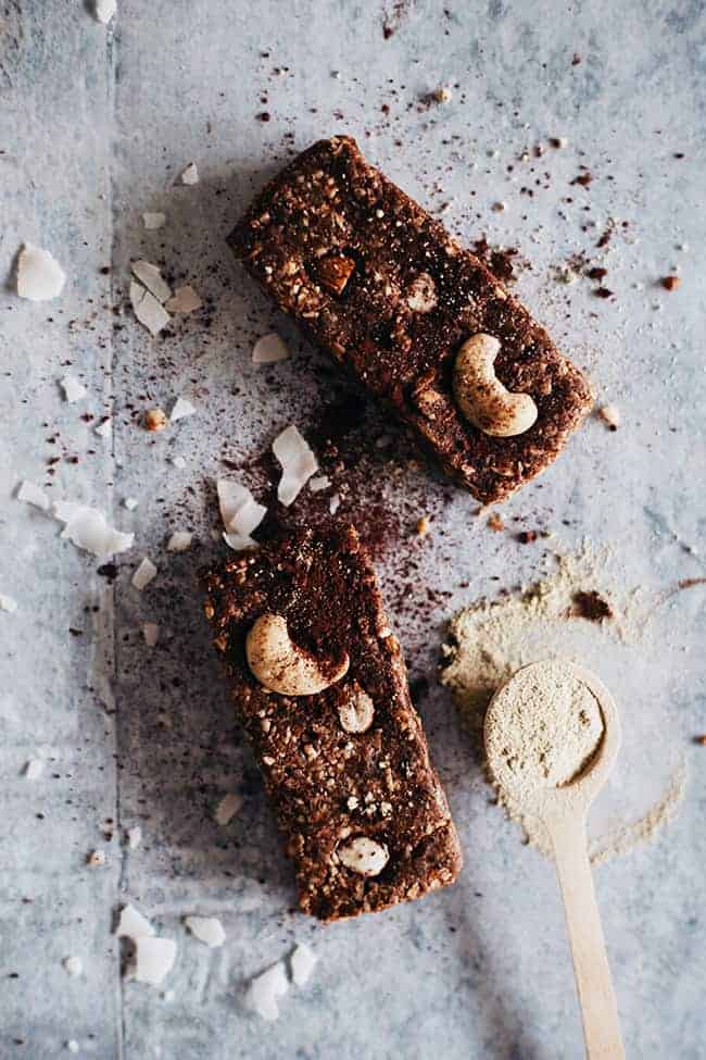 Recientemente descubrí que la maca hace magia en las barras energéticas. Los azúcares naturales dan un delicioso sabor y una explosión de energía antes del ejercicio. Lo combino con una mezcla de nueces para obtener grasas y proteínas saludables, dátiles sin hueso para obtener azúcar natural y avena para obtener fibra y acción limpiadora.