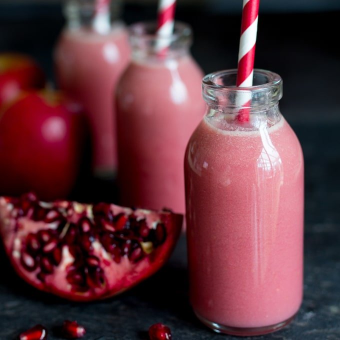 Así que en su lugar preparé este batido tibio de manzana, bayas de saúco y granada, un batido de manzana refrescante y cálido, un poco de salmón fresco con granada cordial, todo mezclado con un té de jazmín caliente. Un comienzo perfecto para mi día con pijamas esponjosos, películas navideñas con los niños y haciendo mucho daño en mi caja de chocolates. [contented sigh].