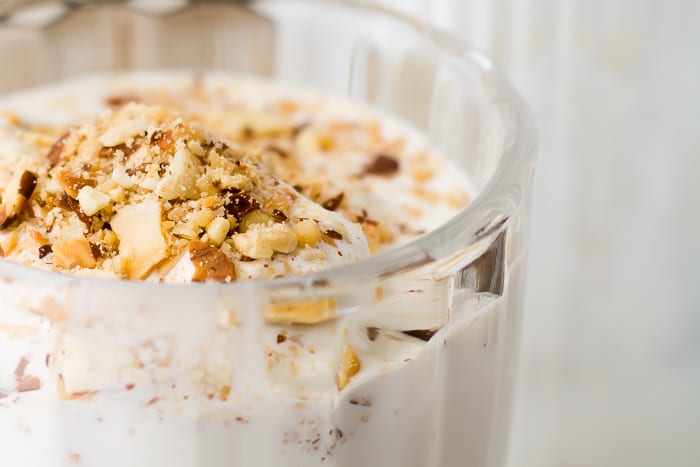 - 4 cucharadas de mezcla de almendras tostadas, y más para decorar la receta a continuación