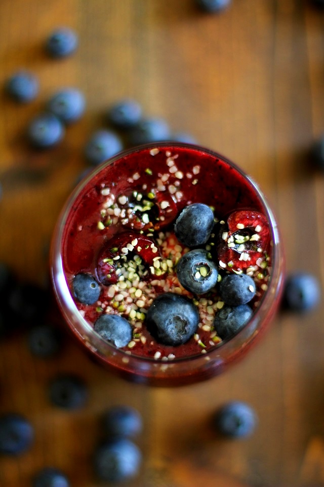 … Y luego tenemos el rico en antioxidantes cerezas y arándanos, que son como el verano en un vaso y son tan atractivos en tu rostro. En serio, creo que una de mis formas favoritas de consumir cerezas es en forma de batido. Asegúrate de no exagerar bebiendo este batido varios días seguidos, ya que demasiadas cerezas realmente pueden afectar tu felicidad digestiva. Créanme, hermoso lugar, amigos. Agregue algunas semillas de cáñamo por un tiempo Omega 3 y Omega 6 infusión. Y mantequilla de anacardo, de todos modos. los proteína… cremosidad … hmmm.