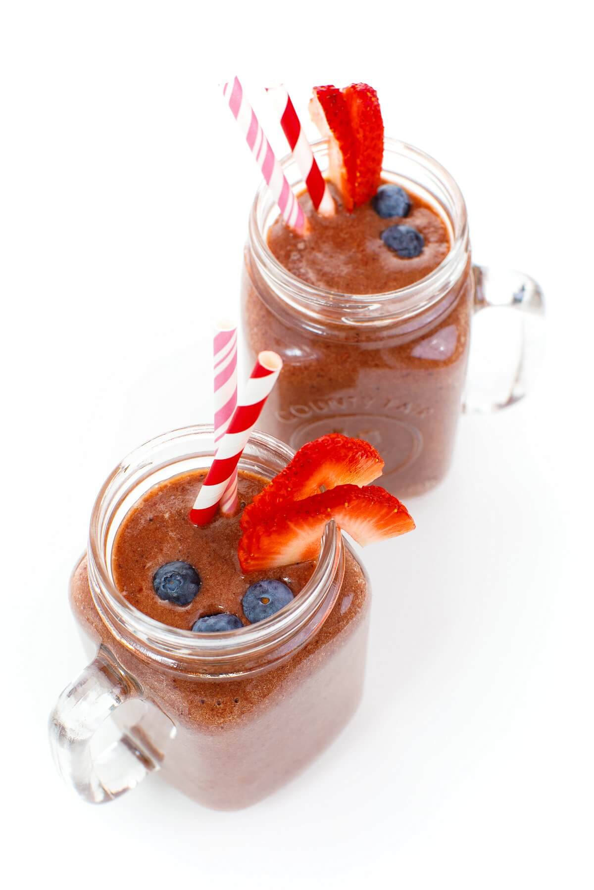 Los batidos son mi versión de una pizarra limpia. Uno de mis secretos para los batidos de edulcorantes naturales es usar frutas naturalmente dulces y maduras como plátanos, bayas o manzanas. Al usar fruta madura, elimina la necesidad de edulcorantes adicionales que agregan calorías.