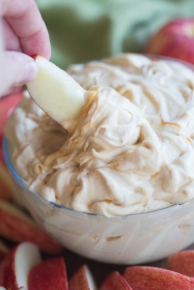 Este batido ligero y esponjoso Salsa de manzana caramelizada ¡Está hecho con queso crema, salsa de caramelo y crema batida y sabe INCREÍBLE!