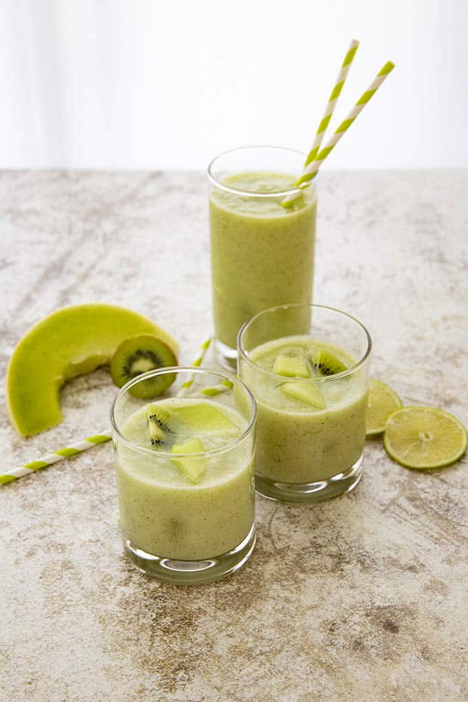 Kiwi Melon Smoothie es un desayuno o merienda fresco, cremoso y refrescante! ¡A toda la familia le encantará este batido saludable durante los calurosos meses de verano!