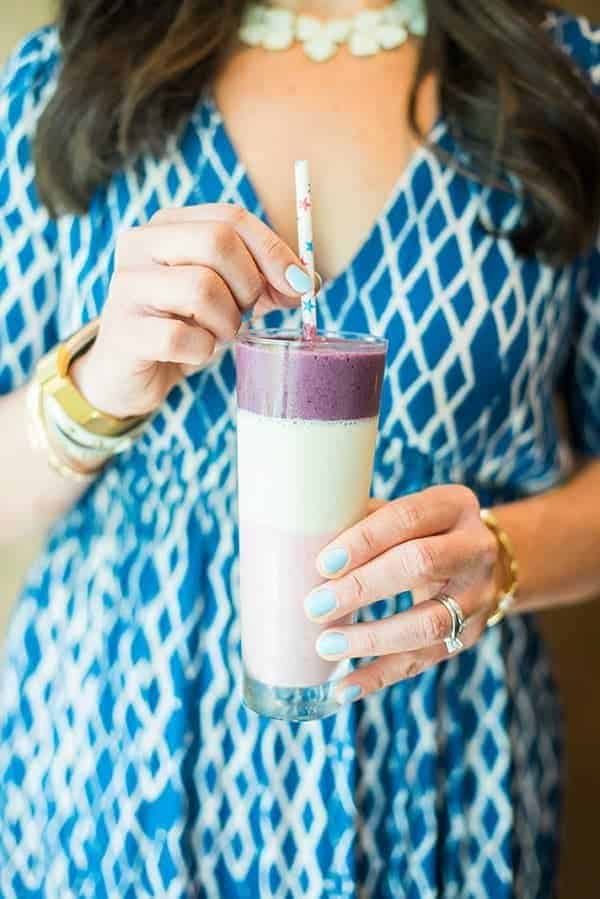 Por supuesto, estos batidos rojos, blancos y azules son solo UNA idea de capas. ¡Siéntase libre de ser creativo con sus frutas y verduras favoritas!