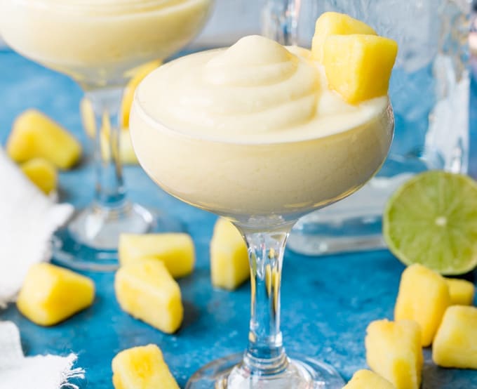 La receta utiliza piña congelada para darle un agradable toque de sabor a piña, al tiempo que proporciona el elemento congelado necesario para lograr esa textura espesa y espesa.